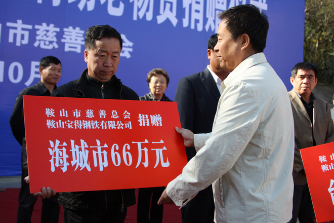 10月16日,公司總經(jīng)理張鐵漢出席市慈善總會(huì)“敬老月”活動(dòng)。繼2009年公司捐資300萬(wàn)元為全市72所敬老院購(gòu)置家電、廚具等,今年公司再次捐資200萬(wàn)元,為全市72所敬老院,共3600多名孤寡老人添置新衣、被褥,讓這些頤養(yǎng)天年的老人感受到社會(huì)主義大家族的溫暖。(圖為“敬老月”活動(dòng)現(xiàn)場(chǎng))
