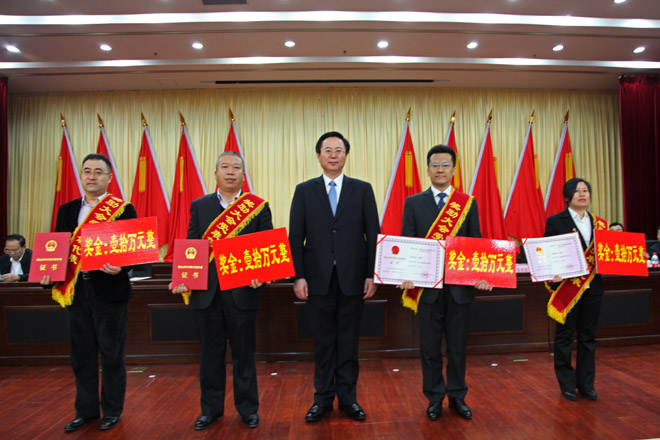2012年3月19日,在鞍山科技大會上我公司項(xiàng)目《高性能熱軋H型鋼復(fù)合生產(chǎn)線工藝創(chuàng)新與技術(shù)開發(fā)》榮獲2012年度鞍山市科技進(jìn)步特等獎,公司常務(wù)副總經(jīng)理、總工程師王洪新參加頒獎儀式。